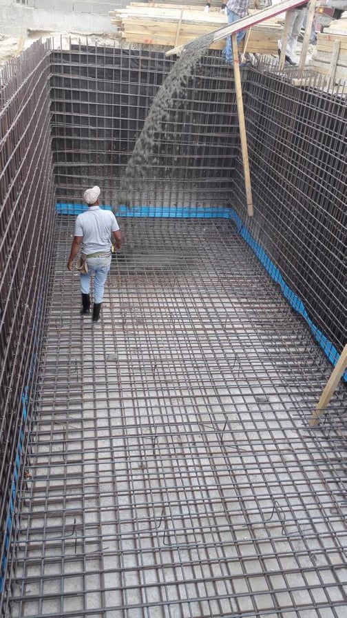 سواء عملية غمر التربة بالمياه لمدة 48 ساعة أو استخدام طرق العزل و بالإضافات اللازمة لعمل الخرسانة العادية أو المسلحة وتكون حتي منسوب الصفر المعماري .