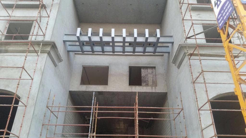 ويتم عمل ذلك عن طريق كوابل يتم تثبيتها بمسامير من الصلب ويكون هذا الجزء أطول من البرج وعرض البلكونة
